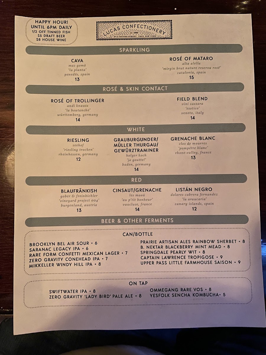 Welcome to Lucas Confectionery, a hidden gem located at 12 2nd St, Troy, NY. This vibrant venue offers a delightful assortment of wines, including rich reds like Groslot and Cabernet Franc, refreshing whites such as Chenin Blanc, and unique orange blends. The ambiance is eclectic, boasting various seating options that cater to different moods, from chic coffee shop vibes to trendy bar settings.